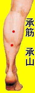 肝心のツボですが、「こむら返り」は筋肉の収縮異常ですから、全身にある多くのツボの中から「筋会」(きんえ)と呼び筋肉の病気全般を司るとされるツボを使います。 これは「陽陵泉」(ようりょうせん)という名のツボです。このツボと実際にこむら返りが起こっている筋肉(腓腹筋)の上のツボ「承山」および「承筋」をポイントにします。