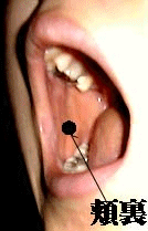 ③頬裏(きょうり) 口びるの両端の角から口内に約3センチほど入った唇の端と同じ高さの所です。 口内の頬粘膜の上です。 このツボは唐の時代670年ごろに著された「千金方」という医書で始めて場所 が確定されたツボです。 針の場合は口の奥のほうに向けて斜めに粘膜に添うように刺します。 又は小さく刺して血液を絞り出します。 効果ですがやはり黄疸や口内炎、歯肉炎、舌先のデキモノに効きます。 顔面に直接接していて頬神経の枝、眼窩下神経、顔面神経の枝が分布している場所で すから 顔面神経麻痺にも高い効果があります。 |
